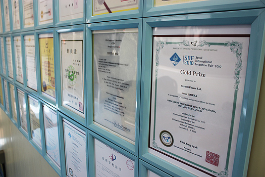 게란티제약의 특화된 생합성 공법과 기술력으로 세계 주요 국가의 특허를 획득하였고, 여러국제기구로부터 받은 다수의 최우수상 수상 경력은 세계적으로 인정 받은 기술력의 방증이라 할 수 있습니다.