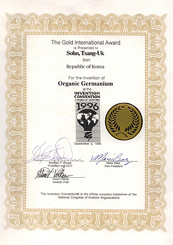 - 세계 최초 바이오게르마늄 발명 특허취득 (한국)