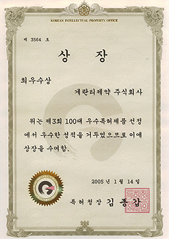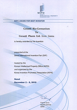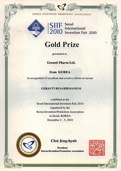 - 국제발명대회 금상 수상 - 게란티제약 바이오게르마늄 제품 안전성 및 기능성