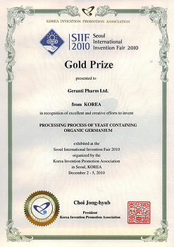 - 국제발명대회 금상 수상 - 바이오게르마늄 유기태변환 생합성 기술공법